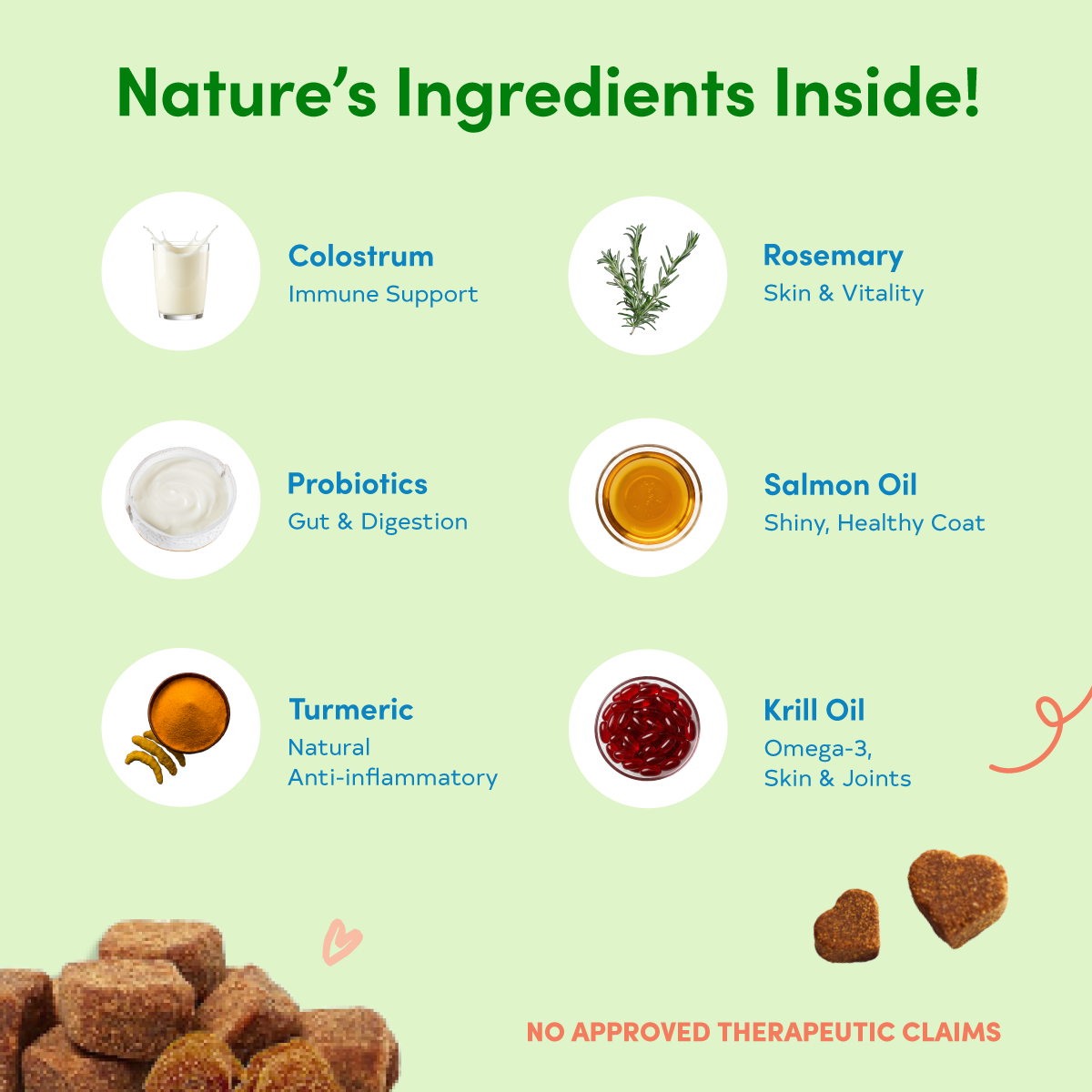 They target the root causes of itching, hotspots, and sensitivities while boosting immunity and skin health.
