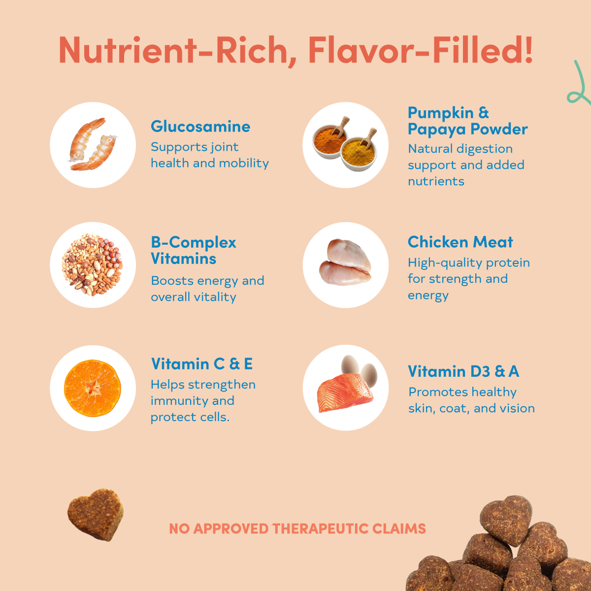 🌟 Healthy Skin & Shiny Coat — vitamins A, D3, and protein blend